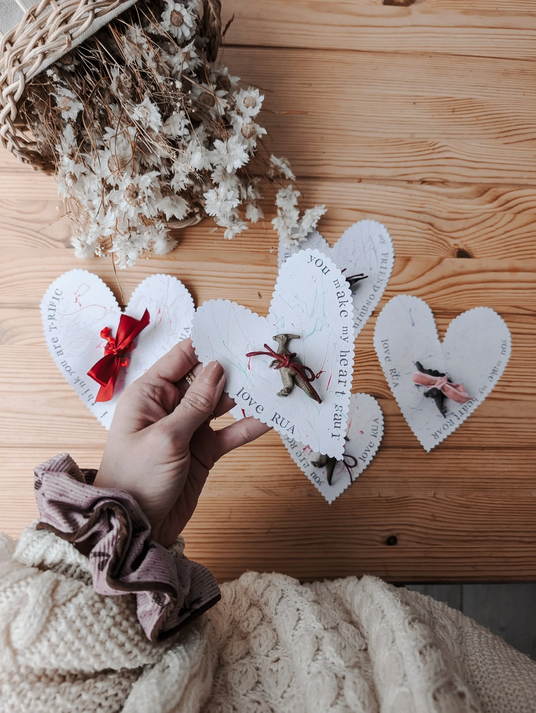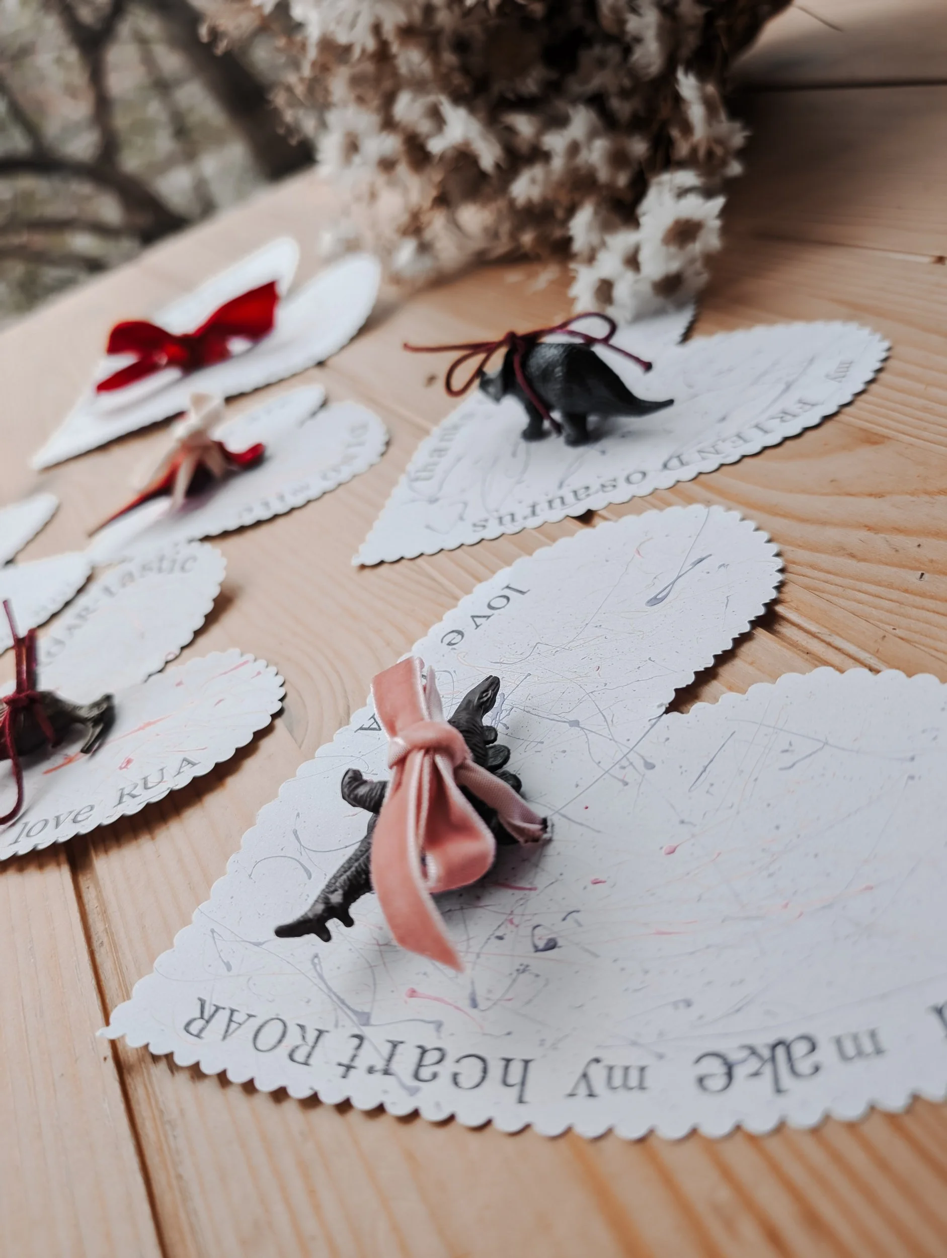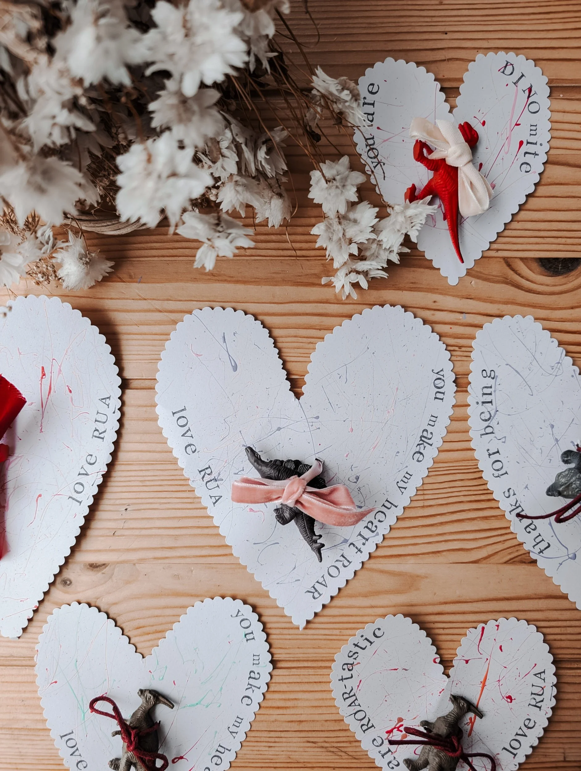 i changed up the colours on each heart for fun and chosen to complement the dinosaurs colour, but you could stick to pinks and reds for valentines