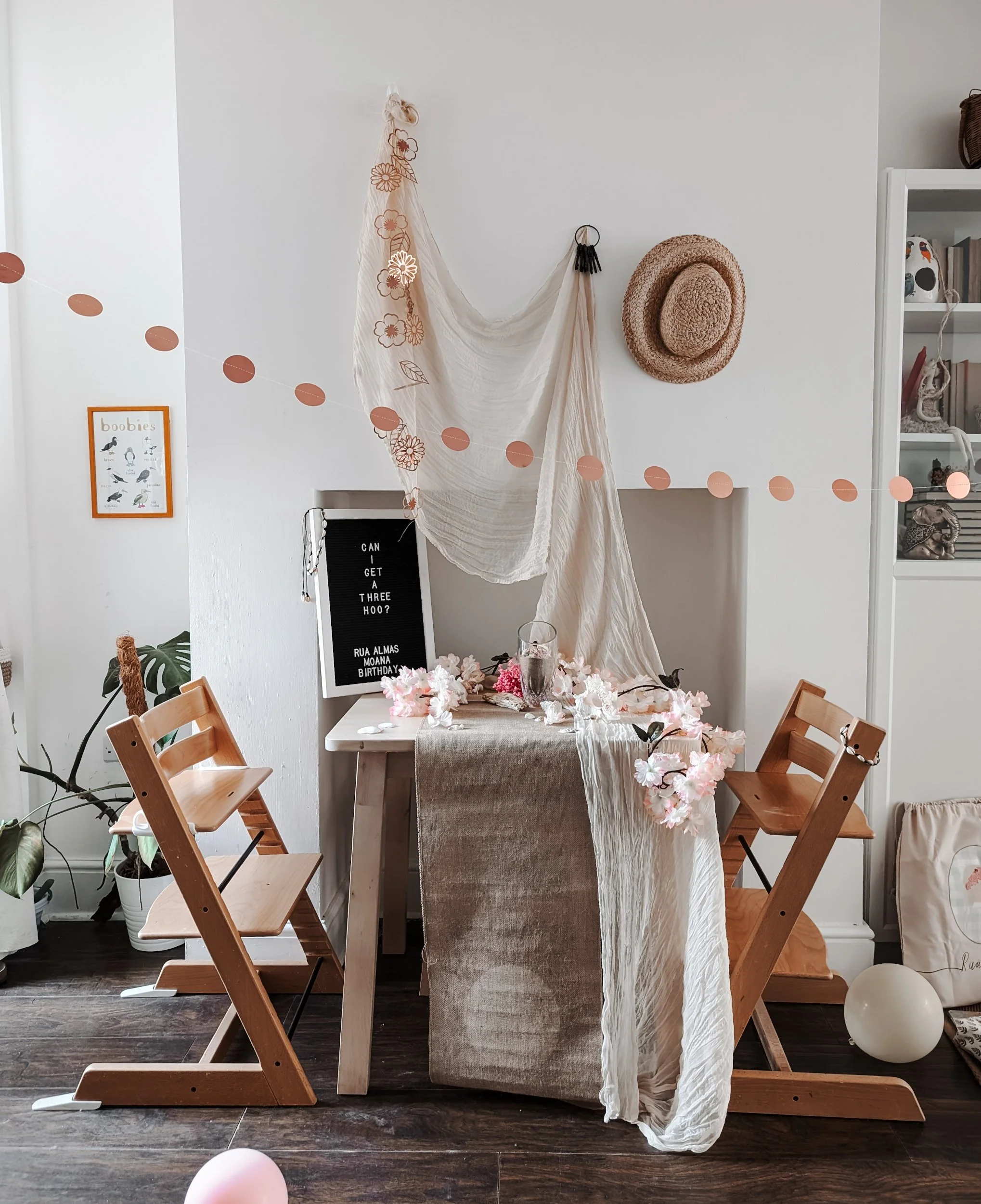 despite throwing a moana themed party for marlows second birthday (you can find the details here)… I had zero props id kept to recycle for her baby sisters third birthday so back to the drawing board for theme take two.